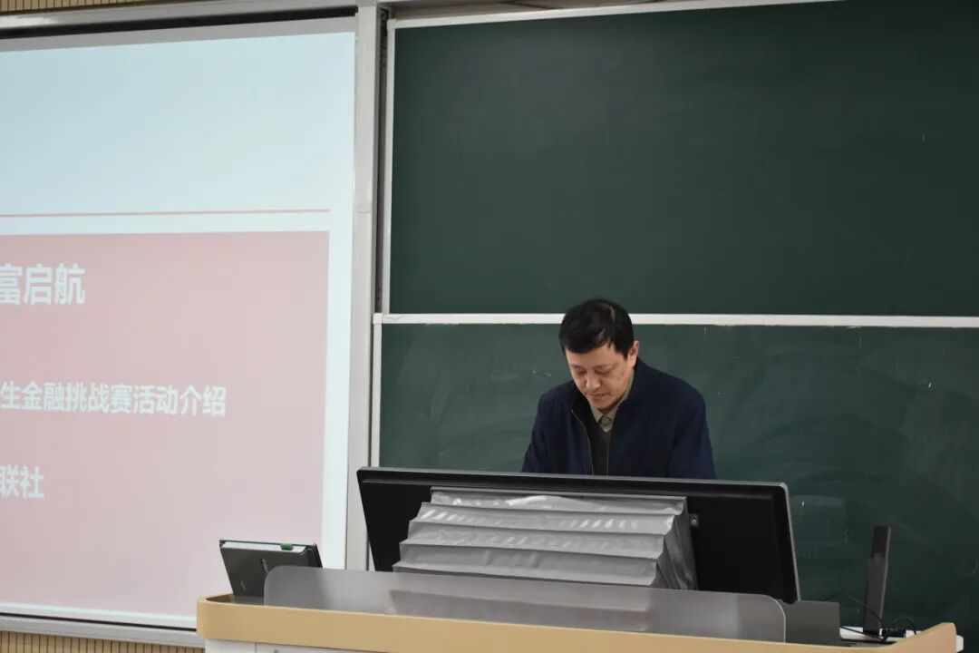 10月29日下午,“上海证券杯”第三届金融挑战赛南京审计大学校赛开幕式在竞慧东楼313隆重召开。本次活动由南京审计大学金融学院证券投资俱乐部、上海证券有限责任公司、上海界面财联社科技股份有限公司联合主办。上海证券江苏分公司总经理赵晋江一行,国泰基金量化投资部研究员、复旦大学计算数学博士韩飞扬,南京审计大学金融学院副院长刘骅,金融学院团委书记刘学燕、学生代表参加开幕式。