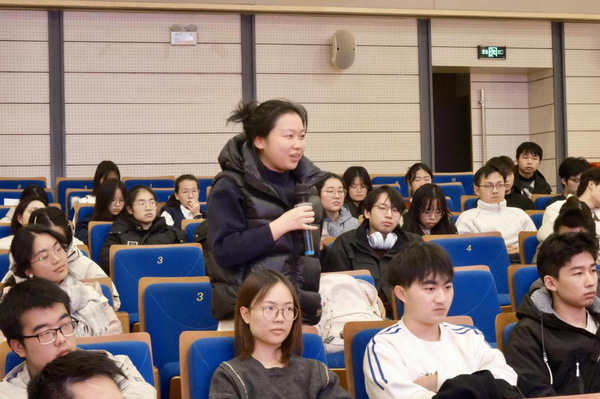 互动交流环节,王海涛校友将话题转向个人成长与职业发展。他分享了企业长期生存的挑战智慧,并提炼出个人成长的核心准则 ——“专注深耕,克服人性弱点”。他谈到,企业选拔人才时,更看重执行力、学习力、耐挫力及积极向上的心态这四大核心素养,而个人成长速度必须超越组织发展需求才能持续立足。面对未来的不确定性,他勉励同学们注重能力打造,保持平常心,在实践中锤炼为客户创造价值、解决实际问题的核心能力,在金融赛道上稳步前行。